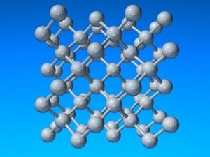 La explicación está en la forma en que se agregan los átomos de carbono en uno y otro. En el diamante cada átomo está unido a otros cuatro por fuertes enlaces químicos formando un tetraedro. Puesto que cada uno de estos cuatro átomos está unido a su vez a otros tantos formando sendos tetraedros, de todo ello resulta una red cristalina muy compacta que es la que da al diamante sus principales características, en especial su extrema dureza.