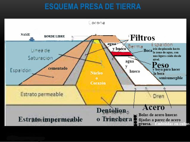 Reexplicado: Si la boca de agua que está embutida en un carril, y la boca lleva una boya para mantenerla al nivel del agua y un peso para semisumergirla. Se puede combinar el efecto de un pantano y el de una presa en una misma instalación.